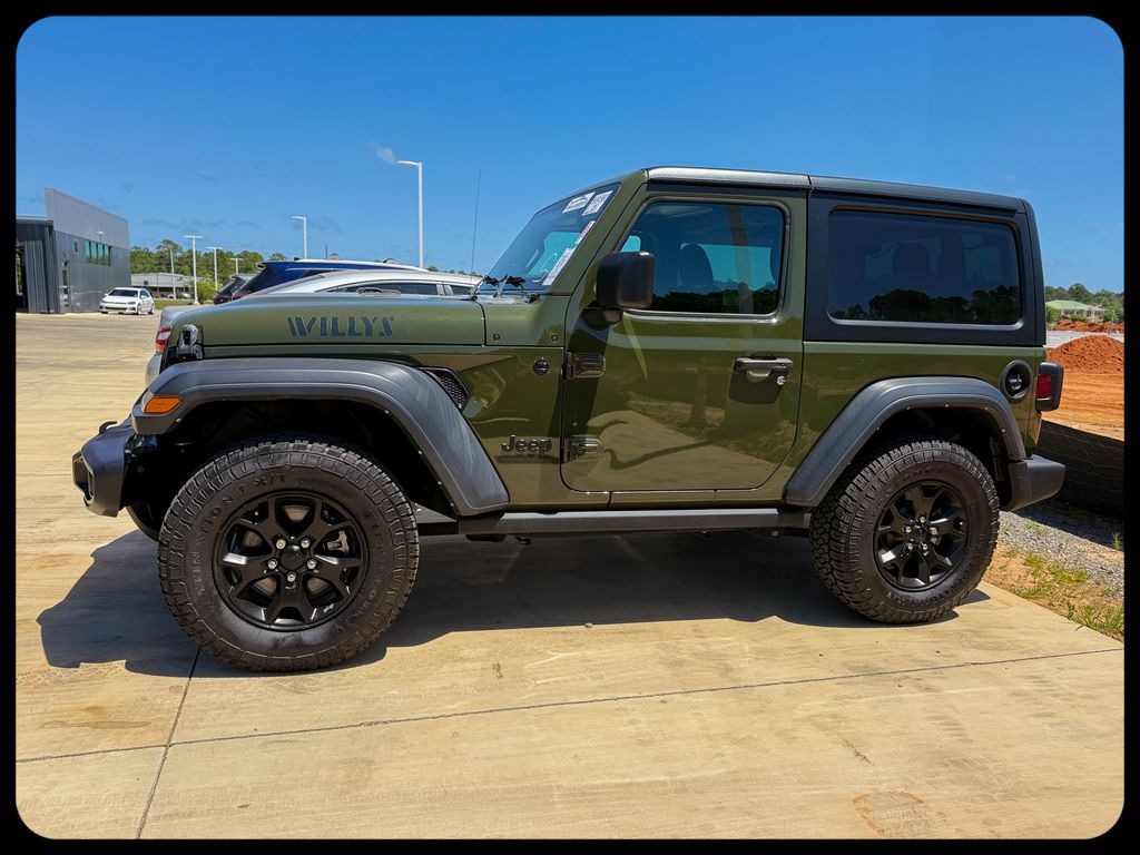 Designed with the adventurer in mind, the Wrangler Willys comes packed with a wealth of features to enhance your journey. The QUICK ORDER PACKAGE 22W WILLYS equips this Jeep with a host of premium amenities, including a Leather-Wrapped Steering Wheel, Willys Hood Decal, and Mold-In-Color Bumper with Gloss Black accents.